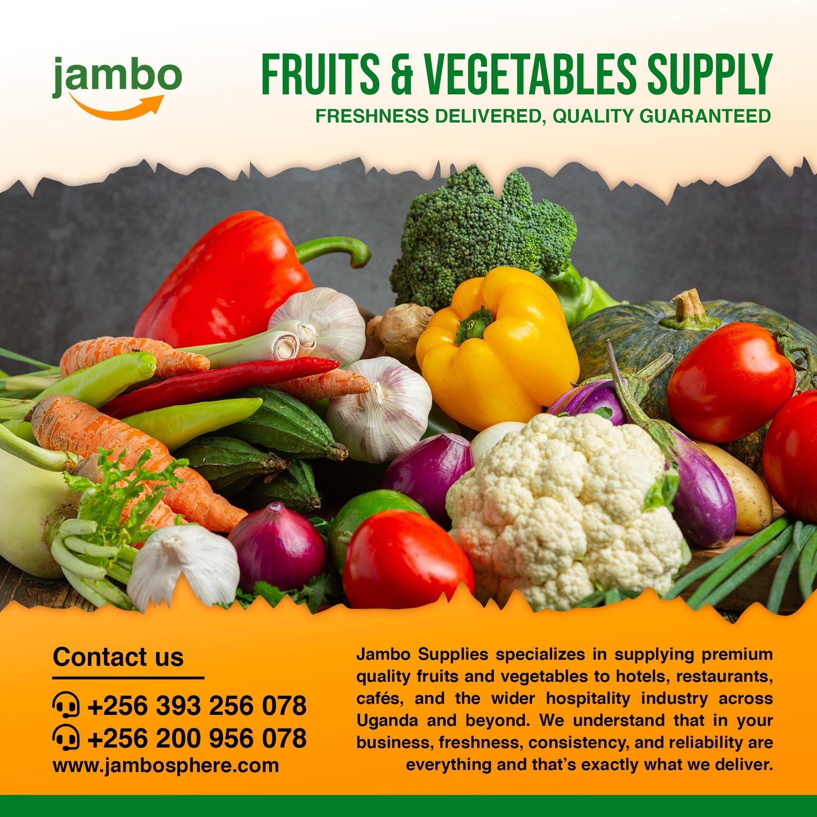 Jambo Supplies provides dependable sourcing and delivery of fresh produce and essential supplies for hotels, restaurants, cafes, and businesses ensuring quality, consistency, and timely service.